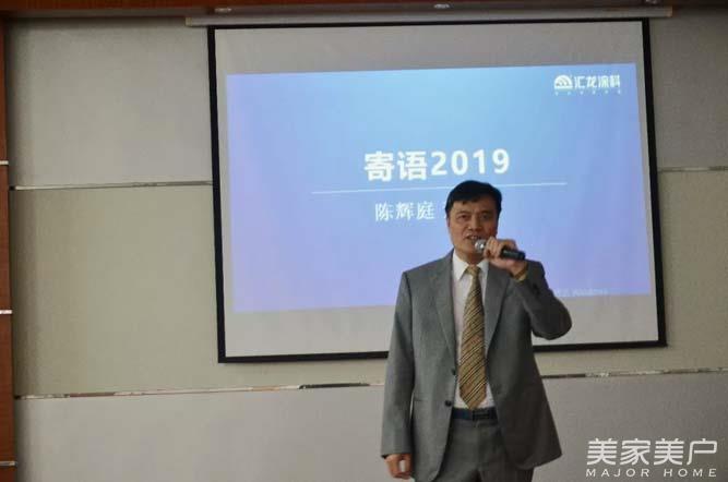 會議開始,匯龍董事長陳輝庭作致辭,陳董首先解讀目前家居涂裝行業發展趨勢,他認為,國家大力發展環保產業,家居上下游產業在嚴峻的環境下,面臨優勝劣汰,有實力的企業將迎著環保的春風,逆勢發展。陳董總結了2018年匯龍的工作成績,寄語2019年的企業發展,對此次培訓的精英們提出了新期望和要求,希望在新一年里,全體匯龍人必須在思想上高度重視,在行動上迅速響應,以加倍的努力投身公司發展大業中!同時,陳董希望學員們能夠將學習到的知識與實際工作相結合,幫助所負責區域客戶提升銷售業績和提供優質的技術服務,全力實現2019年的業績目標。