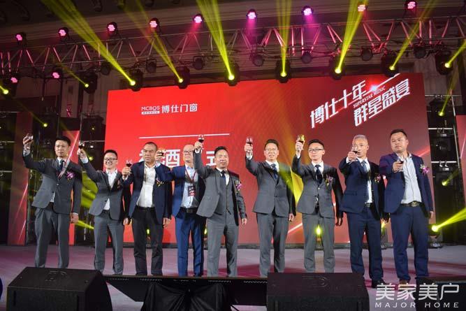 佛山市博仕門窗有限公司董事長(zhǎng)王湘根,全國(guó)工商聯(lián)商會(huì)執(zhí)行會(huì)長(zhǎng)張傳喜,廣東省門業(yè)協(xié)會(huì)會(huì)長(zhǎng)、潤(rùn)成創(chuàng)展木業(yè)董事長(zhǎng)關(guān)潤(rùn)開,廣東省門業(yè)協(xié)會(huì)鋁門窗專委會(huì)會(huì)長(zhǎng)、派雅門窗董事長(zhǎng)李鈞洪,新豪軒集團(tuán)董事長(zhǎng)馮文波,廣東省門窗協(xié)會(huì)會(huì)長(zhǎng)、億合門窗董事長(zhǎng)曾奎,高德木紋董事長(zhǎng)胡振賢,廣東省門業(yè)協(xié)會(huì)秘書長(zhǎng)徐生,住建部建筑門窗節(jié)能性能標(biāo)識(shí)專家委員會(huì)專家委員、德國(guó)諾托五金中國(guó)技術(shù)總工程師河紅,申博五金公司董事長(zhǎng)林福生,英輝鋁業(yè)總經(jīng)理譚永漢,堅(jiān)鋁鋁業(yè)董事長(zhǎng)彭昭煌,雄星鋁材董事長(zhǎng)陳雄,富軒門窗董事長(zhǎng)李昌安等行業(yè)重量級(jí)嘉賓應(yīng)邀參與,此外還有20多家行業(yè)媒體亮相,共賀博仕10周年慶典。