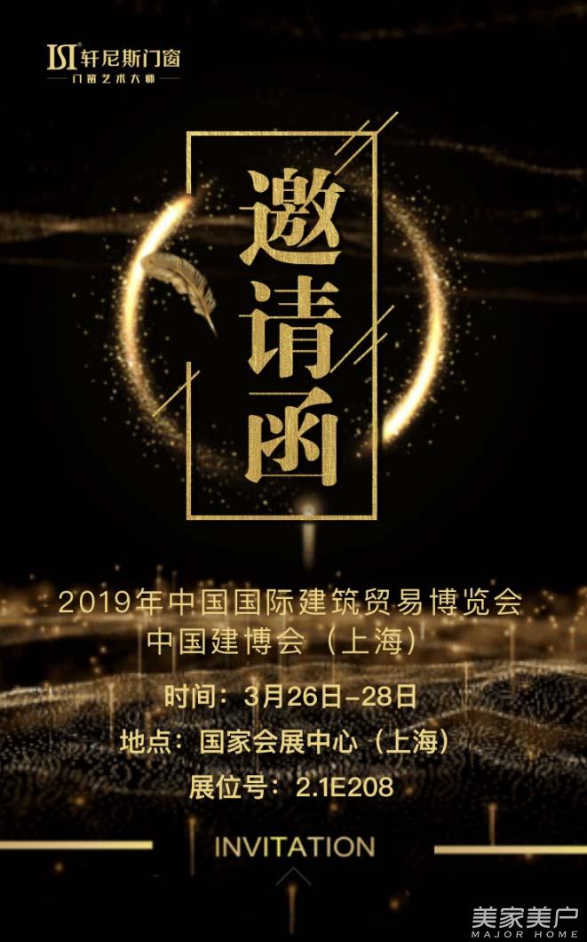 2019年3月26-28日,備受矚目的2019年中國國際建筑貿易展覽會——中國建博會即將在上海(虹橋)國際會展中心拉開帷幕,作為系統門窗領先品牌的軒尼斯門窗將掀起一場“新國貨”復興的浪潮,攜“門窗藝術大師”主題再度款步而至,向世界起航。
