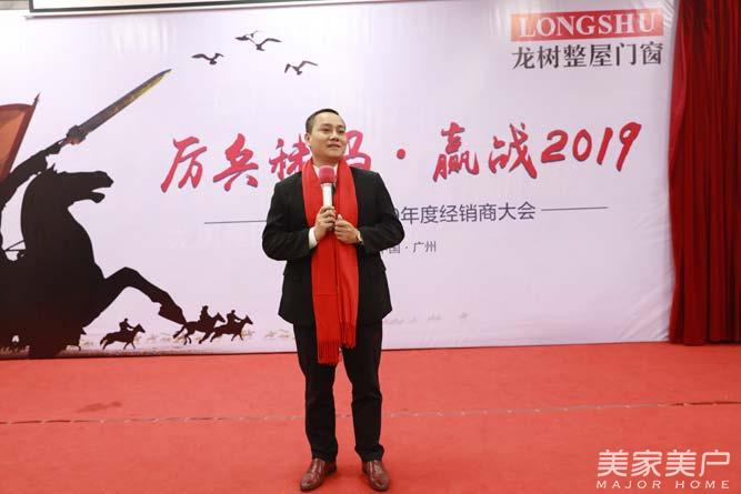 隨后,龍樹集團總裁陳壽仔受邀上臺演講。陳總總結了2018年門店經營上出現的問題,并提出了建議。2019年龍樹整屋門窗將從9大方向做出布局,包括:以產品質量穩定為基礎,控制交貨周期、產品質量實行多項管控管理規范、加強服務意識等。陳總表示:出現問題、解決問題,希望通過總部和經銷商家人們的精耕細作,讓龍樹能夠在當地生根發芽,開花結果。
