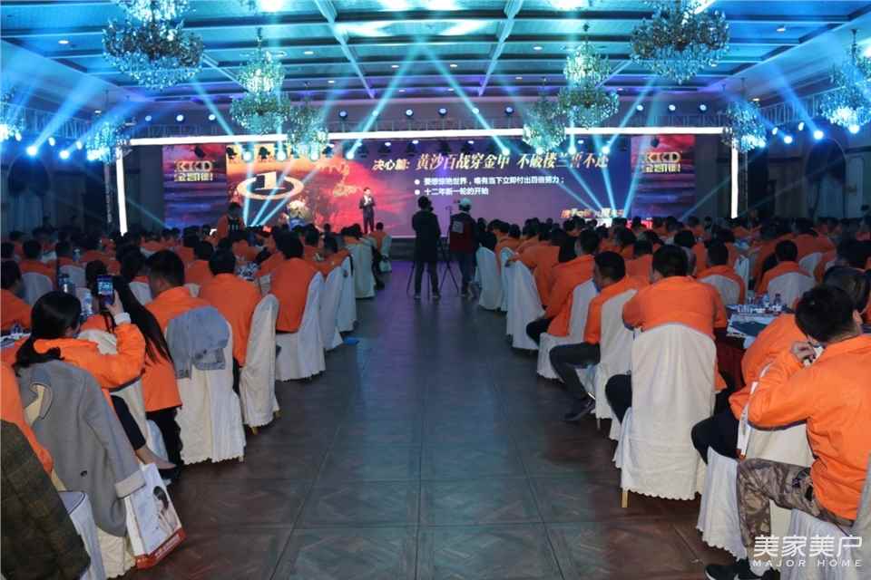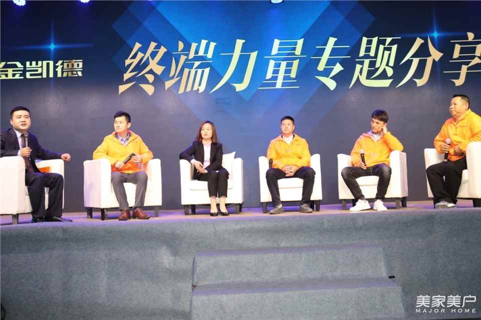 從經銷商入住時的貼心提醒,到各種走心的宣言,甚至今年經銷商參會服裝也換成了暖暖的橙黃色,與金凱德的金元素組成了黃金搭檔,會議背景底色為藍色,預示著金凱德正在門業大集成的新藍海中遨游。不忘初心,始終用心地服務好自己的經銷商,金凱德可謂是用心良苦。