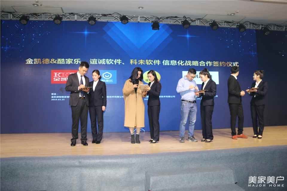 現在是個競爭激烈的時代,打仗一定要有好武器。在此次品牌營銷峰會上,金凱德與酷家樂、誼誠、科未三家簽署戰略合作協議。加大信息化的投入,也標志著金凱德正在步入信息化4.0時代。隨后,三家公司的代表,分別介紹了各自產品的用途。