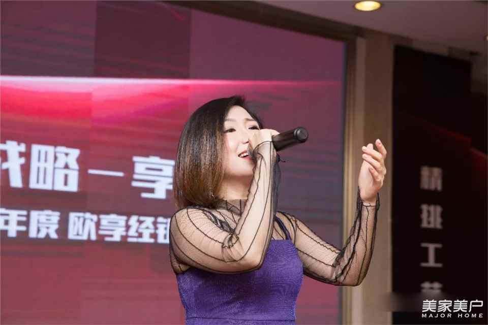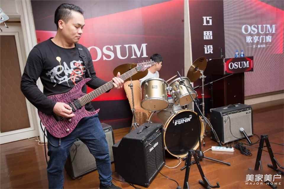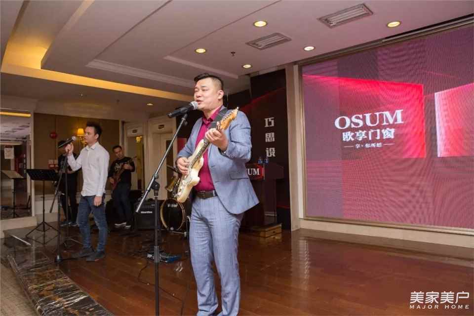 (歐享門窗電商運營總監(jiān)陳總攜樂隊表演歌曲《飛得更高》《月半小夜曲》)
