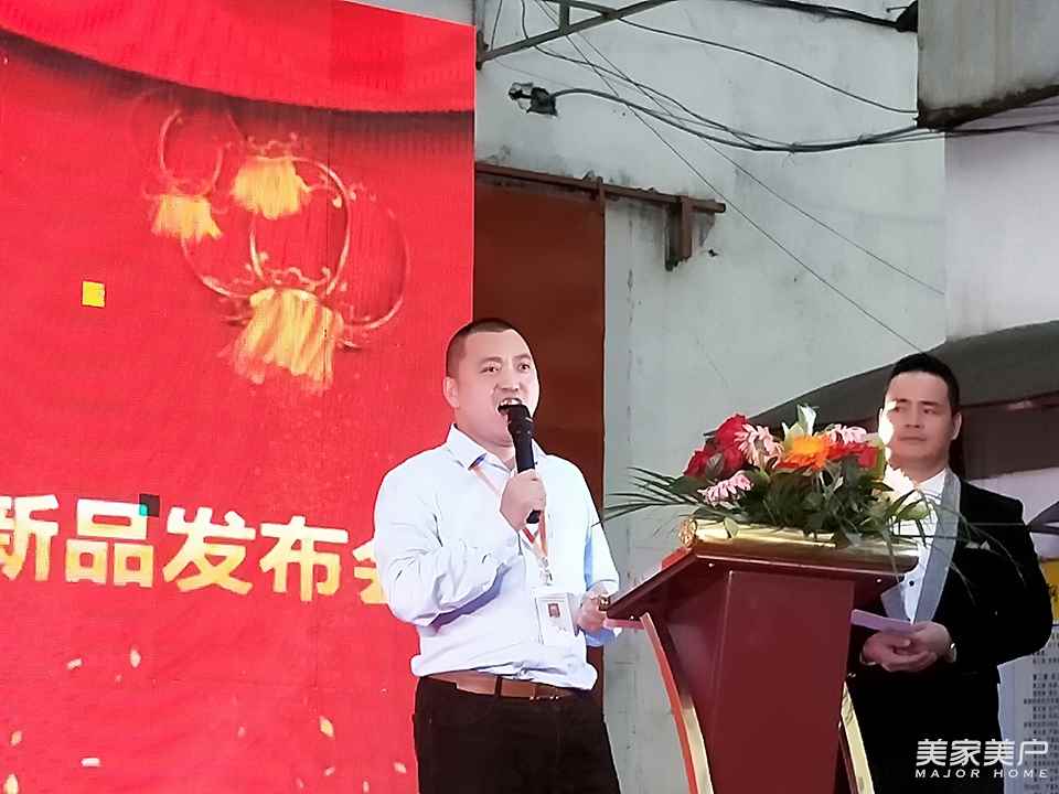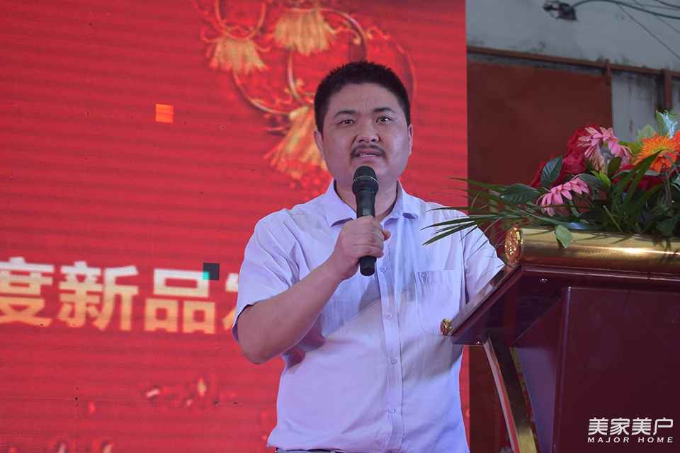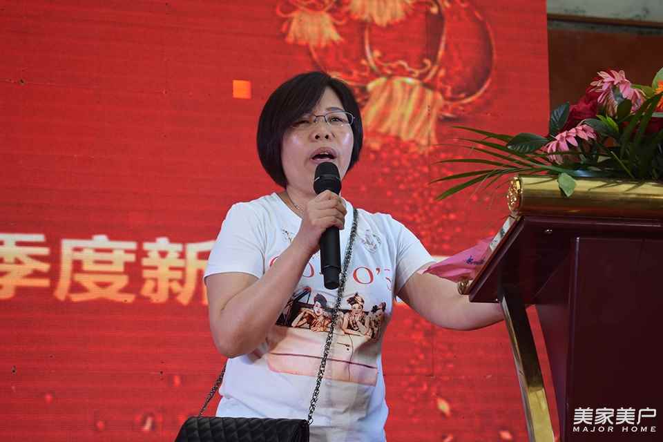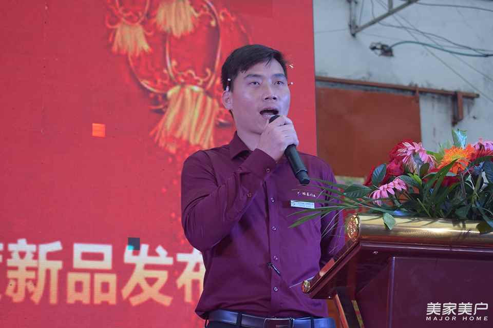 隨后,鴻基集團總經理許汐迅上臺介紹新品發布具體細節并重點講述招商政策。第一點優惠,樣板門免費送。凡是在簽單時預先付全款,以后下單訂與樣板同款產品,首套返樣板款20%,第二套返30%,第三套返50%。第二點,樣板門五折優惠,預存貨款,存多送多。存三萬抵3.5萬,存五萬抵六萬,存八萬抵十萬。招商優惠吸引了眾多經銷商的目光。