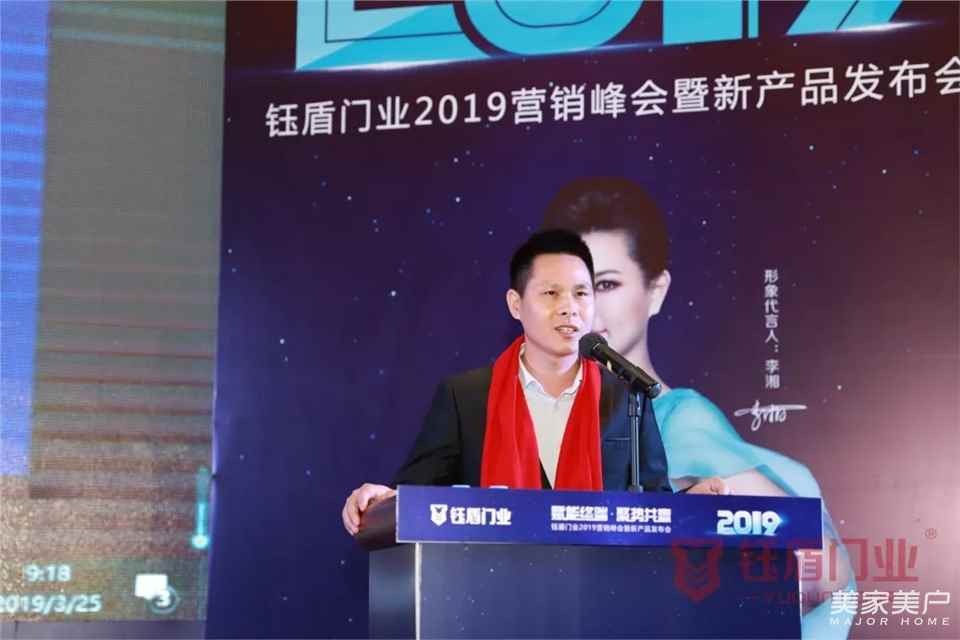 鈺盾門業(yè)總經(jīng)理賀源糧先生做開幕致辭, 2019年鈺盾門業(yè)將從新品研發(fā),品牌推廣、終端幫扶等維度出發(fā)切實幫助經(jīng)銷商,同時為大家創(chuàng)造和提供更多的有利發(fā)展的經(jīng)營思路和經(jīng)營空間,雙方的合作不僅賺取合理的投資回報,同時也要搶占更多的市場份額。