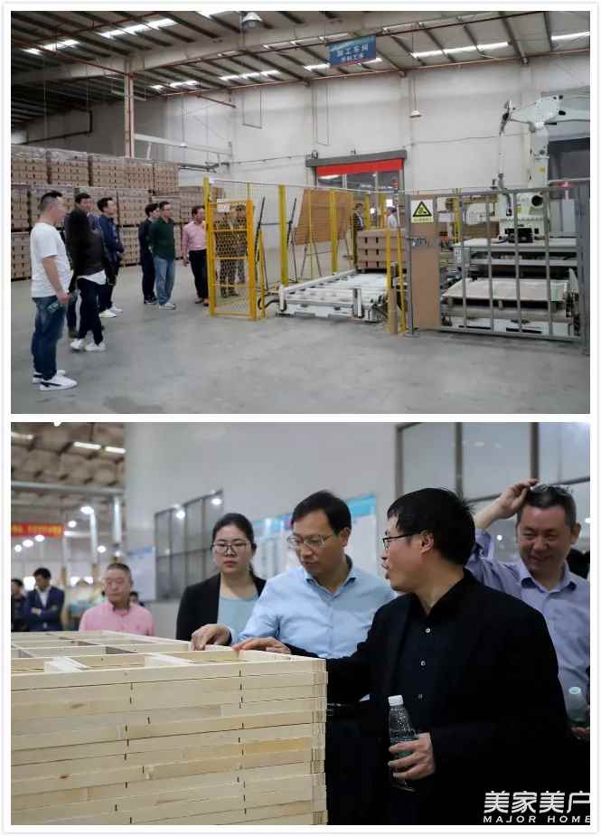 其后,20余名與會領導、行業代表、專家在歐總及邢總的陪同下,先后參觀了現代筑美研發大樓及地板廠、PVC門廠,了解我司的發展規模、發展規劃、研發實力及生產制造實力,對我司在木門產品的研發及制造進行深度的考察。