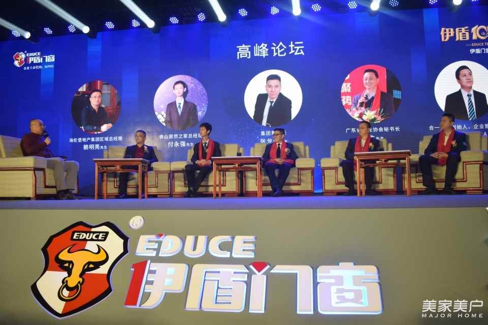 高峰論壇環節中,伊盾門窗董事長張龍偉、廣東省門業協會秘書長徐生、廣東海倫堡地產長三角區域總經理賴明亮、北京居然之家集團華南區總經理付永強、知行合一企業管理管理顧問公司董事長朱榮寶五位行業大咖圍繞門窗行業未來發展趨勢,深度探討應對行業發展難題。