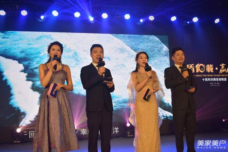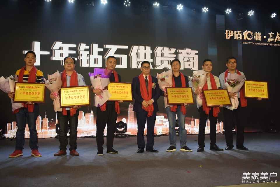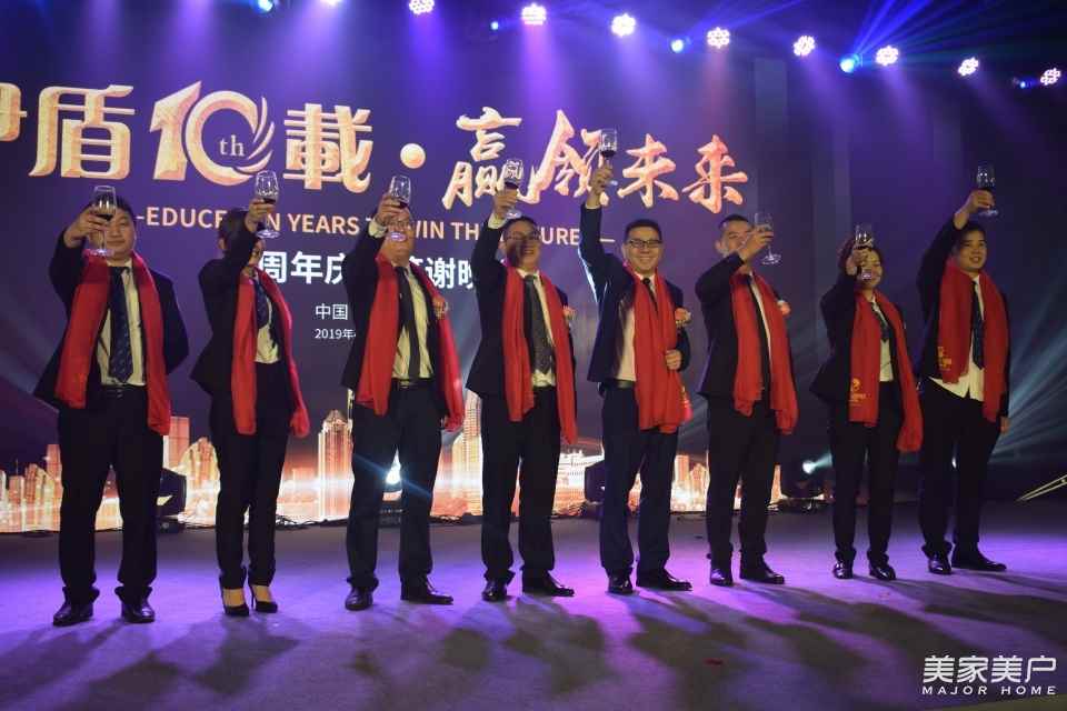 主辦方精心策劃的晚宴活動啟動,伊盾門窗總經理袁南京率先發表伊盾10載答謝致辭。隨后,舞臺舉行10周年啟動儀式,這預示著伊盾門窗已經走過10年的風風雨雨,眾多行業領導一同上臺祝酒表示祝賀。