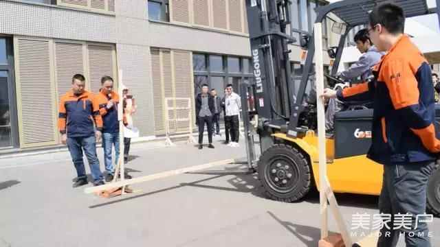 火炬傳遞之后,叉車大賽決賽將鳴笛開槍,正式開啟本年度“森鷹工匠”大賽的正式賽程。此次,木窗二部在預賽中大獲全勝,在決賽場次的三個名額中占據兩席。馬云剛、尹巖、徐立柱三位叉車能手,在大家的期待中展開角逐。