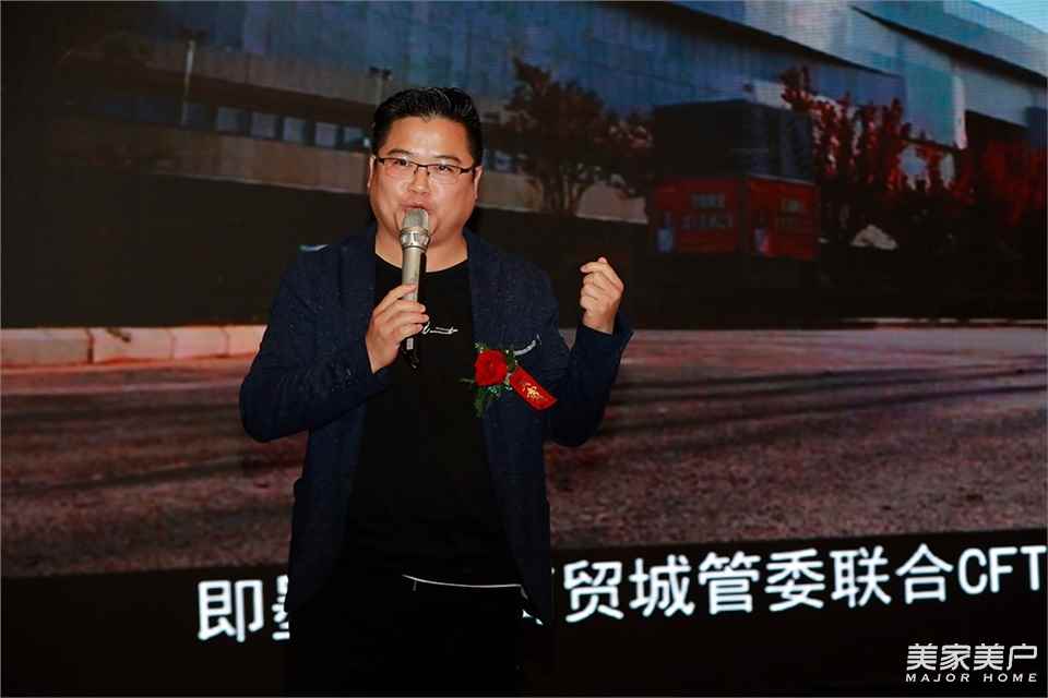 即墨家具博覽中心CEO陳龍介紹博覽中心的情況