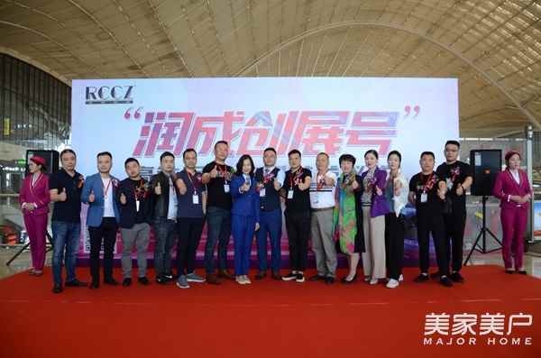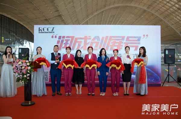 隨后,與會嘉賓與各位領導移步典禮臺共同為潤成創展號高鐵首發儀式進行剪彩。“潤成創展”號高鐵列車冠名在在場各位的見證下正式啟動!潤成創展木業營銷總監張金文先生和永達傳媒華中大區總經理鄂慶女士上臺,雙方現場授予高鐵模型儀式,正式啟動潤成創展號高鐵專列!