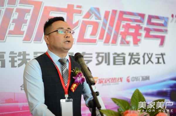 活動伊始,潤成創展木業營銷總監張金文張總率先上臺致辭,張總說道,“潤成創展號”動車凝聚了潤成多年的心血,品牌傳播一直是潤成創展木業很重視的板塊,高鐵列車不僅僅有著巨大的客流量,更是直擊,政、商、公、旅的準確性媒體。潤成創展借此機會牽手永達傳媒冠名 “潤成創展號”高鐵,不僅彰顯了潤成創展品牌發展戰略的決心及對未來前景的信心,更能塑造強勢品牌傳播的影響力,這意味著潤成創展品牌又向前邁出了一大步。從張總的發言中,我們有理由相信,潤成創展乘上中國高鐵,將以新時代的速度,走向世界!