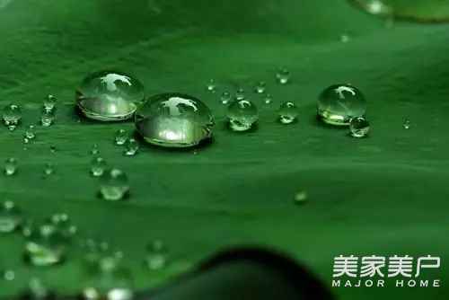 “卻是池荷跳雨,散了真珠還聚”,蓮葉有防水和自潔功能,這是因為蓮葉的表面附著無數個微米級的乳突結構。每個微米級乳突的表面又附著許許多多與其結構相似的納米級顆粒,科學家將其稱為荷葉的微米-納米雙重結構。正是具有這些微小的雙重結構,使荷葉表面與水珠兒或塵埃的接觸面積非常有限,因此便產生了水珠能在蓮葉表面上滾動并能帶走灰塵的現象。