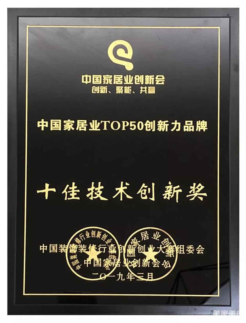 榮獲中國家居業TOP50創新力品牌“十佳技術創新獎”