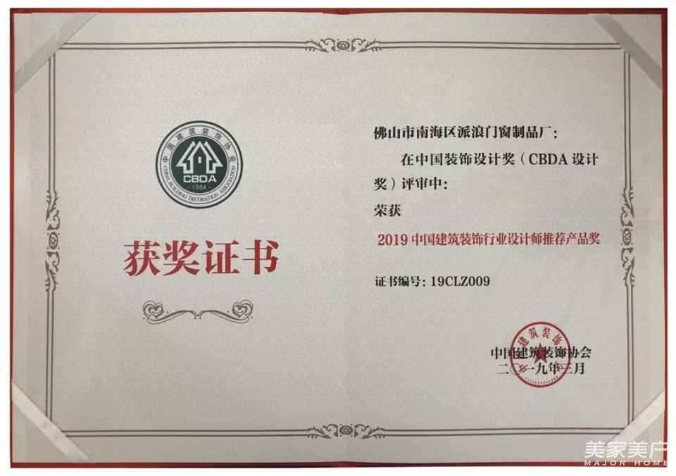 榮獲“2019中國建筑裝飾行業設計師推薦產品獎”