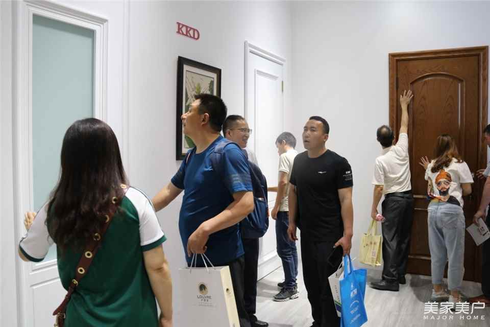 這次的永康門展,對于金凱德又是一次革新性的挑戰事件。把曾經的條條框框全都打破,再重新組合,只為驚艷亮相。從外圍來看,金凱德此次的展廳設計就很有特色,是以湖邊別墅的造型來打造的,茶色的玻璃與框架結構的搭建、再配以球形綠植與木色地板,完全像走入了豪宅。而里面不僅有漂亮的凈味無漆木門區域、還有輕奢風的城市非標區域、極簡精致的實木復合門區域、高大上的衛浴門區域……各類有特色的區域,形成了金凱德的6倍盈利產品體系,真正地集成了一個家所需的所有好門。這樣新穎與走心的展示,引得參觀者紛紛拍照圍觀,現場可謂是異常的火爆。