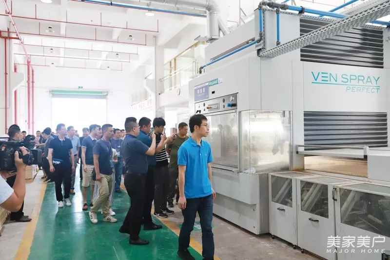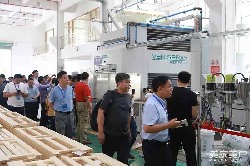 來賓們來到國內首屈一指的博士家居水漆與粉末涂料集中噴涂基地,走進近50000平米的涂裝車間,近距離參觀了德國VENJAKOB往復式自動化噴涂線、意大利FINITURE全自動化吊線靜電旋杯噴涂線與粉末木制家具涂裝生產線,親眼見證了全球領先水漆和粉末涂料環保涂裝設備的驚艷效果,領略了“技術可共享,生產可參觀,環保看得見”的全套新型水漆涂裝模式與“方案可復制,涂裝可批量,品質國際化”的全套新型粉末涂裝模式的完美表現。