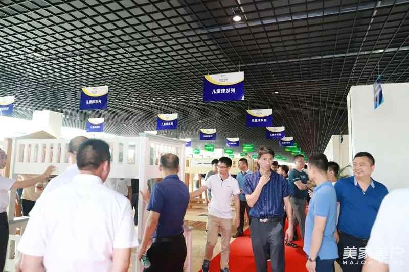 作為本次參觀的又一重點區域——博士家居展廳,位于簡約大氣的博士家居辦公大樓內部,陳列著代表性的系列水漆實木家具與粉末木制家具。兒童家具系列、廚房家具系列、衛浴家具系列、臥室家具系列、辦公家具系列、戶外家具系列……一應俱全。