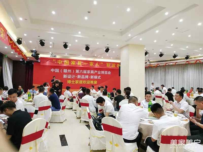 博士家居,作為江西省贛州市南康區為突破制約家具產業發展的環保瓶頸而著力打造的現代家居示范工程,和推動、引領南康家具產業環保升級、轉型發展、創新發展的龍頭企業,在白天的參觀活動結束后,積極承辦了本屆家具產業博覽會的歡迎晚宴。