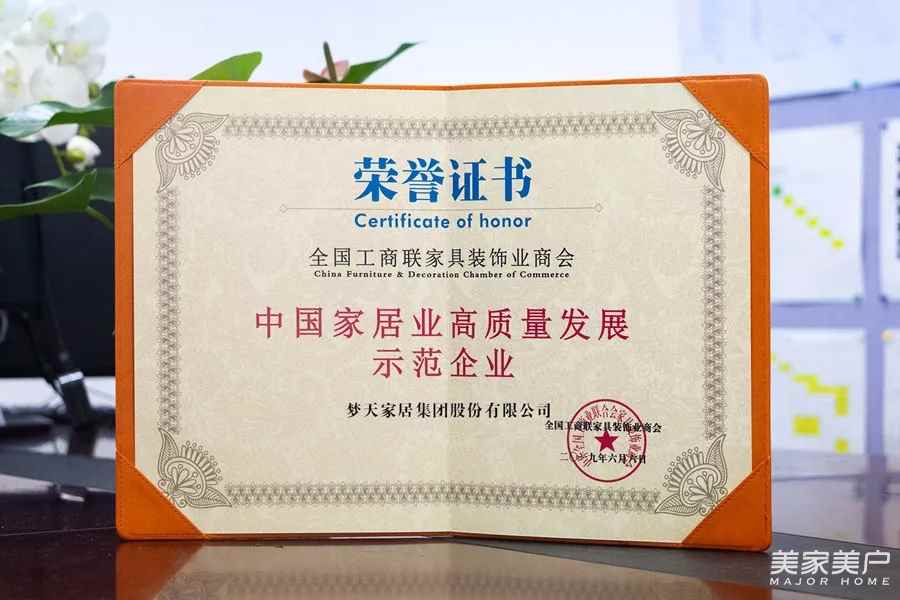 榮耀時刻!夢天獲“中國家居業(yè)高質(zhì)量發(fā)展示范企業(yè)”榮譽