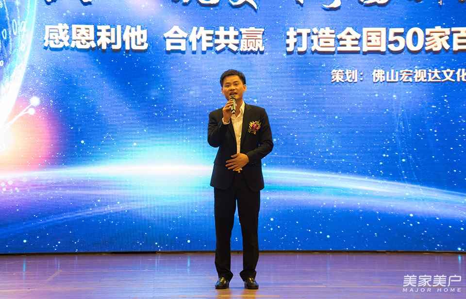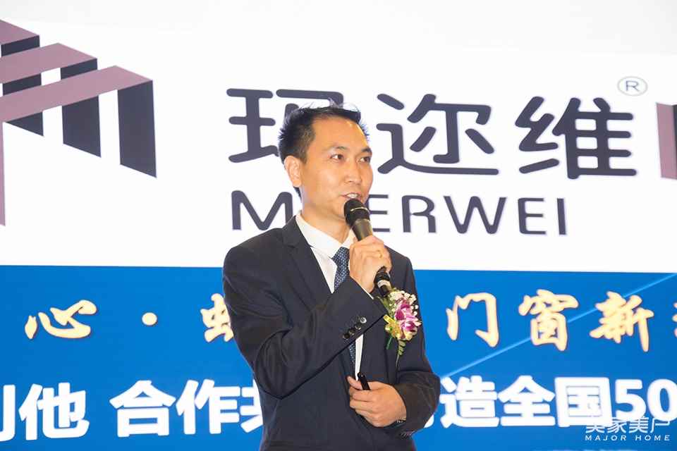 授牌儀式完成后,瑪邇維門窗董事長鄭大維上臺發表歡迎致辭。在言簡意賅的發言中,向現場的嘉賓宣布了瑪邇維門窗今后的方向與發展規劃。他表示,公司在2020年前都不以盈利為目的,做好產品,全力幫扶經銷商。