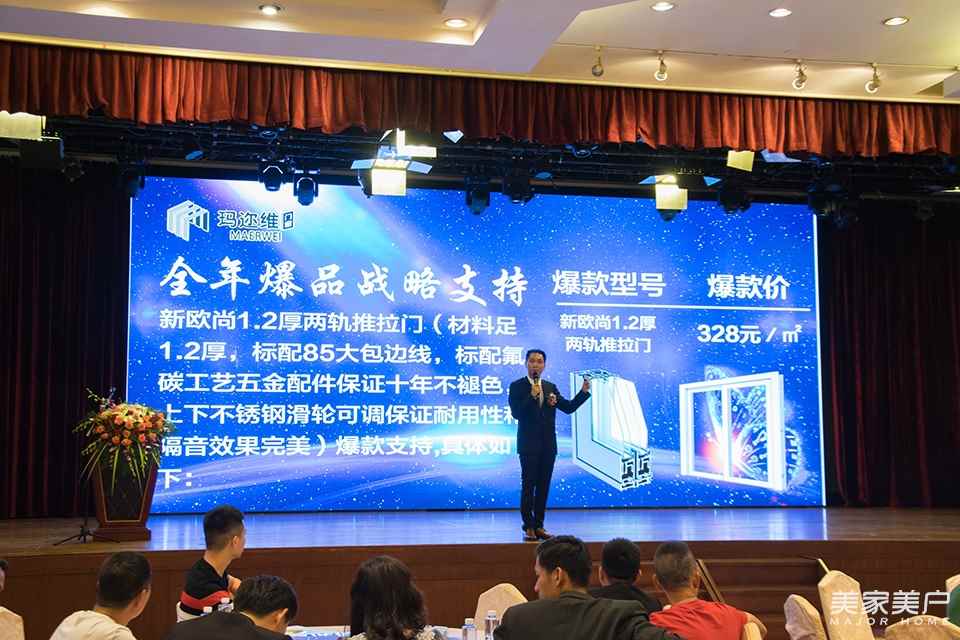在會上,瑪邇維門窗總經理鄭大篡向現場的經銷商家人們詳細的介紹了本次瑪邇維門窗的新產品。不少經銷商們已經蠢蠢欲動了。隨后,瑪邇維門窗運營總監劉世雄在會上提到瑪邇維門窗今后的品牌推廣路線。目前在網絡覆蓋方面,瑪邇維門窗與京東、天貓、當當、蘇寧等平臺達成戰略合作。劉世雄表示,在今后,瑪邇維將會有一整套的策劃方案。專門針對如何去簽單、抖音視頻引流、如何拍視頻、發掘新客戶以及維護老客戶,將提供一套完美的方案給經銷商。在執行上,瑪邇維將建立起軍人一樣的執行力,從瑪邇維門窗的董事長到基層員工,均實行標準化的軍事管理。
