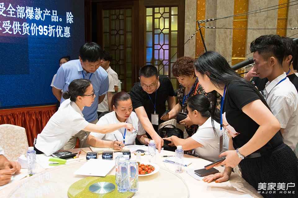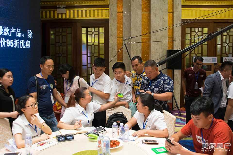 在瑪邇維運營總監劉世雄介紹完優惠政策后,現場氣氛火熱,三輪簽約活動開啟,前五名簽約者贈送大禮(IPAD導購系統)。預存政策方面,預存3萬元貸款,即可享受全部爆款產品。預存5萬元貸款,即可享受除爆款外,其他產品還可以享受供貨價95折優惠。在現場優惠政策的普及下,有不少經銷商進行預存活動。其中有不少經銷商家人一次性預存了十萬元、二十萬元,其中來自河北保定的瑪邇維經銷商趙總一次性預存20萬。現場氣氛的帶動下,瑪邇維簽約活動持續火爆狀態。眾多經銷商家人們預存10萬元、20萬元。