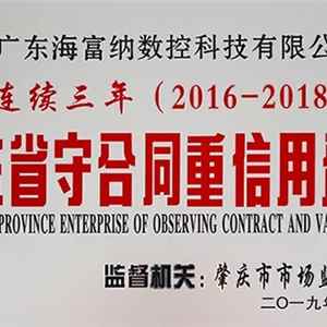 海富納連續三年榮獲“廣東省守合同重信用企業”榮譽