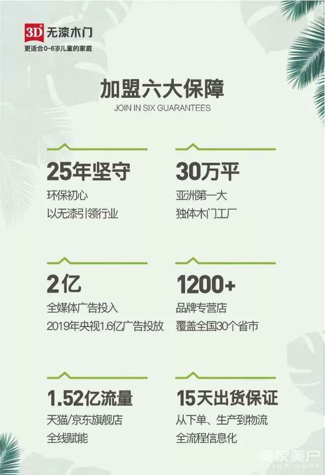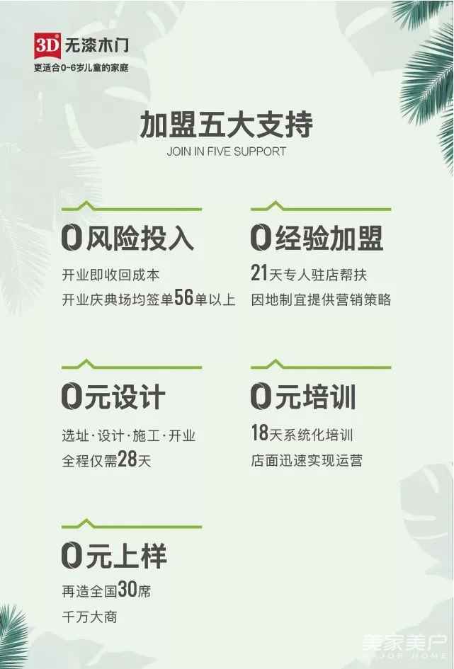 本次建博會,3D無漆木門以“0元上樣,再造全國30席千萬大商”為目標(biāo),力度空前,面向全國發(fā)出招商邀請,以最大誠意帶領(lǐng)經(jīng)銷商實現(xiàn)市場超越。5大支持全面助力經(jīng)銷商加盟,其中0經(jīng)驗加盟,0風(fēng)險投入,0元設(shè)計,0員培訓(xùn),0元上樣為經(jīng)銷商0基礎(chǔ)加盟提供強(qiáng)大支持,讓更多千萬大商在這里崛起。