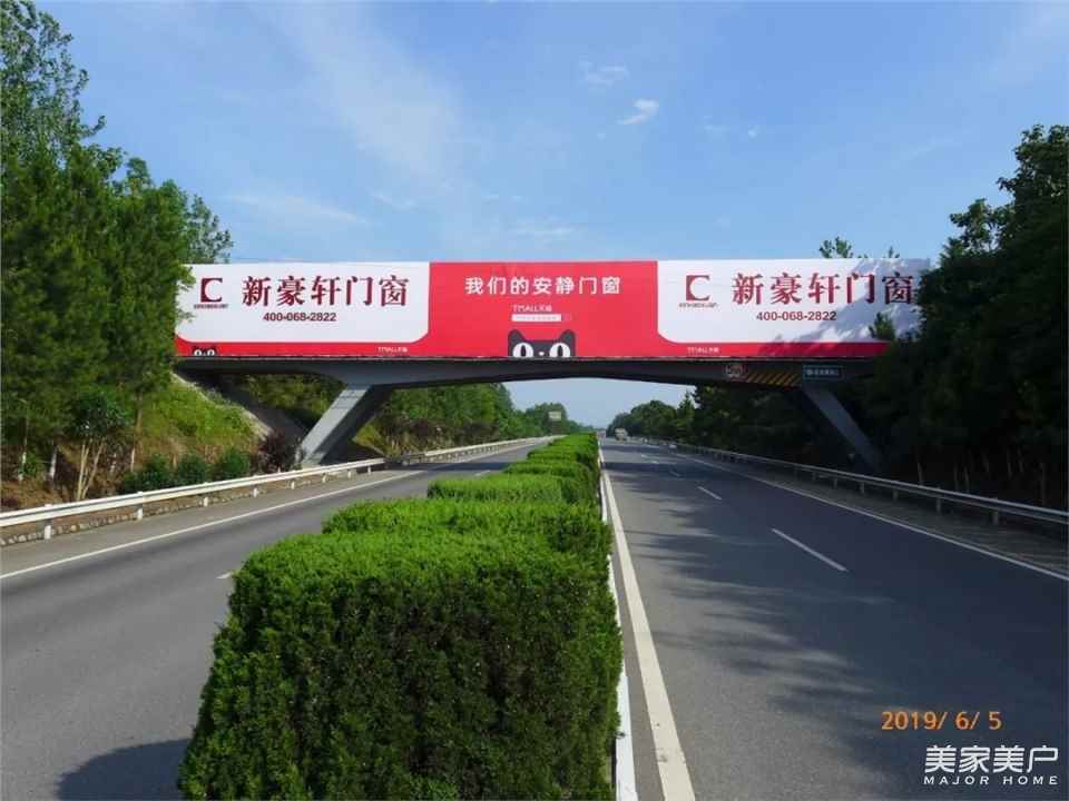 “618靜爆出擊&靜音爆品狂歡節”全國年中大促剛結束,新豪軒門窗品牌風暴又又又強勢來襲,繼續大舉措、大投入、大廣告提升品牌高度。這一次,新豪軒門窗以美美的廣告形象霸屏江西一系列高速公路的跨線橋,閃耀“贛鄱大地”。