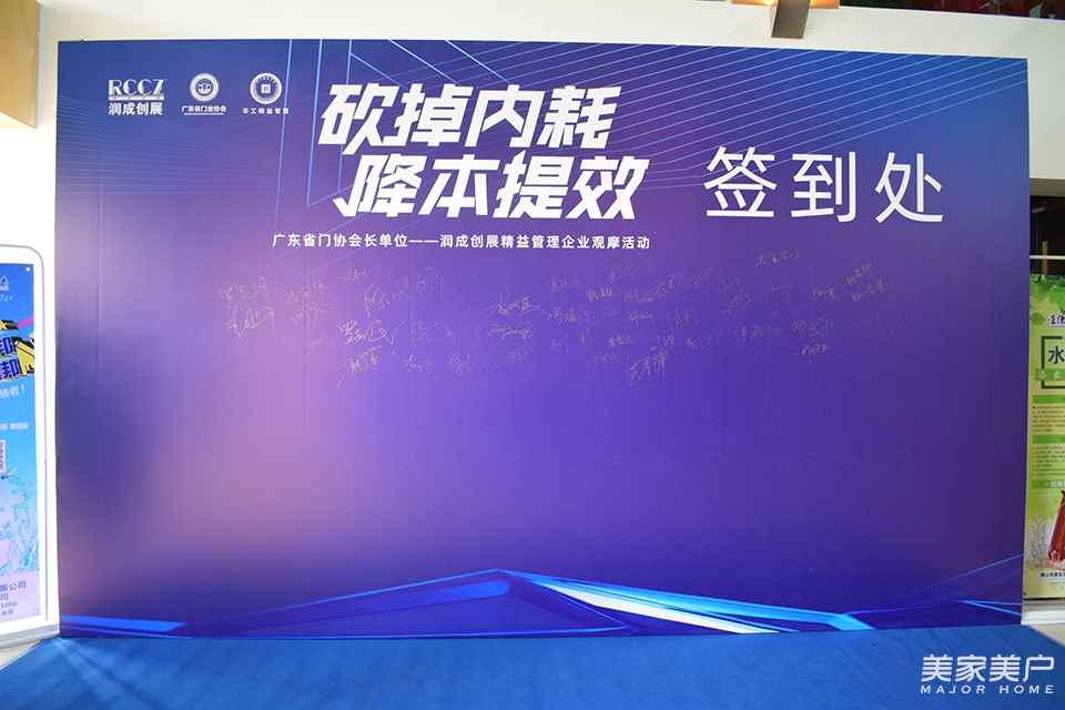 7月1日,廣東省門業(yè)協(xié)會會長單位廣東潤成創(chuàng)展木業(yè)有限公司攜手華工精益舉辦主題為“砍掉內耗,降本提效”的管理論壇。佛山市政協(xié)委員、廣東省門業(yè)協(xié)會會長、廣東潤成創(chuàng)展木業(yè)有限公司董事長關潤開,廣東潤成創(chuàng)展木業(yè)有限公司總經(jīng)理關偉燦,廣州定制家居行業(yè)協(xié)會會長、合生雅居董事長王天兵,廣東省門協(xié)信息化專委會副會長、華工精益管理研究中心主任王曄,廣東省門業(yè)協(xié)會秘書長徐生,東莞市定制家居秘書長陳國橋,湖北門業(yè)協(xié)會秘書長柯晴川,德技優(yōu)品門窗董事長雷少軍,佛山市一品堂品牌策劃有限公司董事長李萬豪,佛山市漆寶化工有限公司(星德邦)董事長張武,廣州市周信橡塑制品有公司董事長周文華等大咖共聚潤成創(chuàng)展工廠,共同見證“砍掉內耗,降本提效”論壇舉辦。