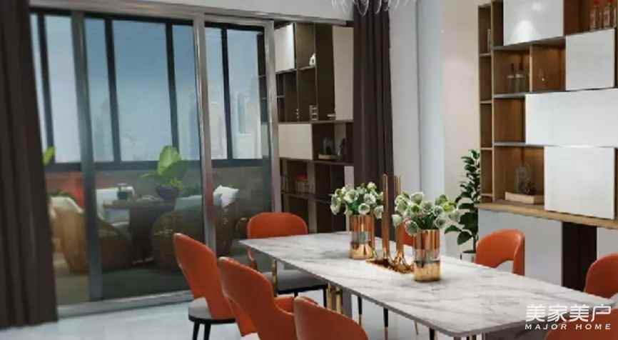 安裝玻璃隔斷門(mén)與安放餐邊柜的餐廳