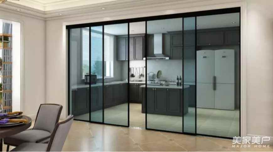 廚房與餐廳之間安放玻璃隔斷門(mén)