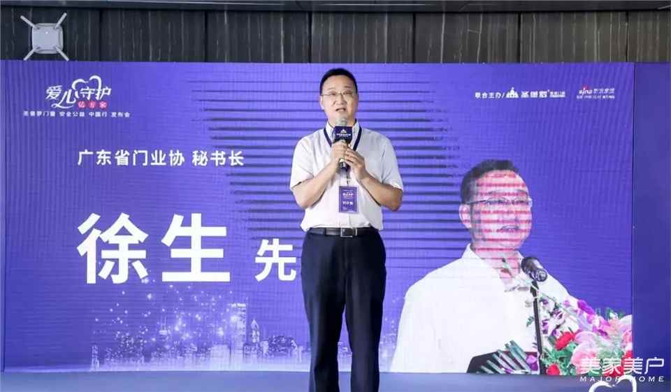 廣東省門業協會秘書長徐生發表致辭:門窗行業應該重視產品的安全性,把產品回歸到社會,回歸到億萬家庭;防墜鋼繩的研發,是圣堡羅門窗對社會的一個重大貢獻。