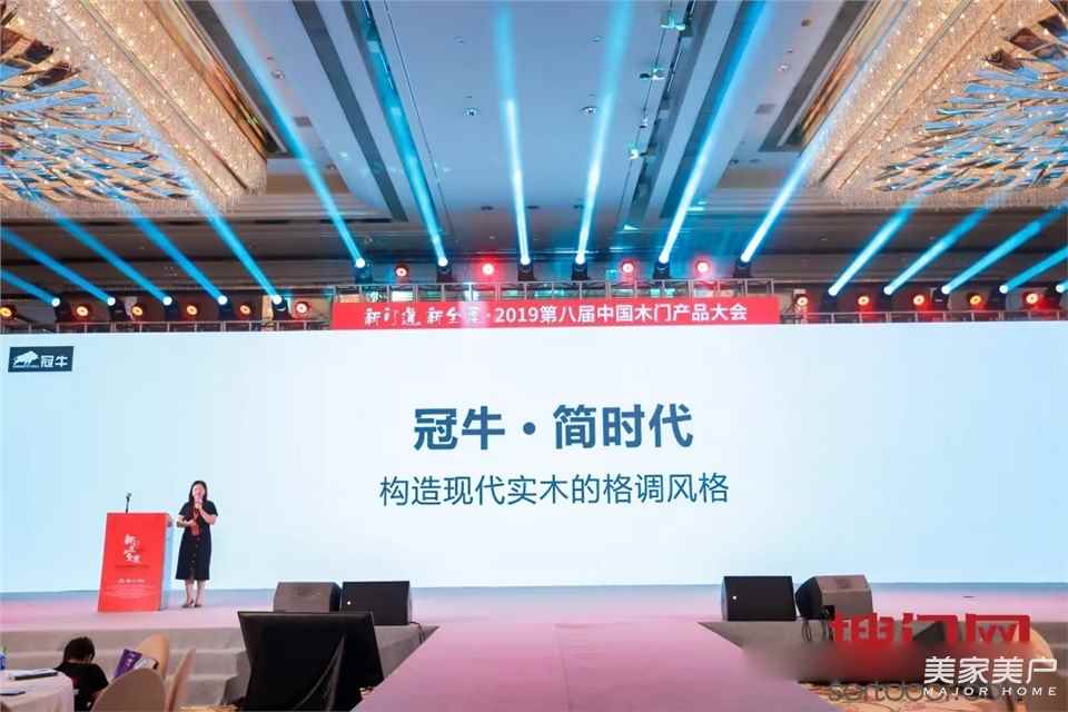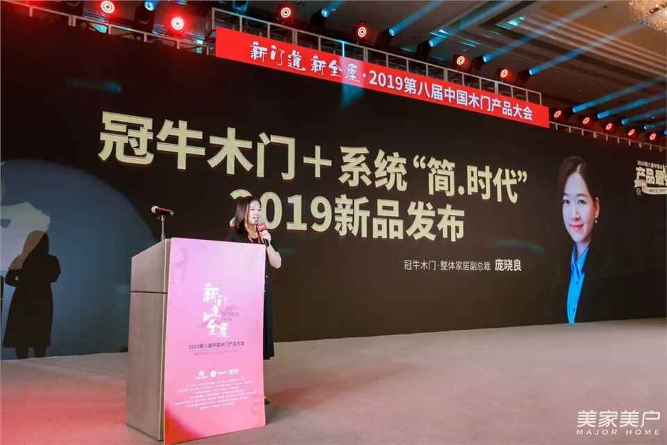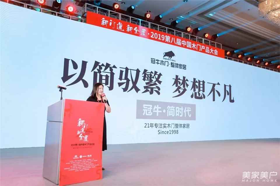 新門道·新全屋-2019第八屆中國木門產品大會在廣州香格里拉酒店盛大召開,冠牛木門·整體家居副總裁龐曉良女士在現場發表了《《以簡馭繁,夢想不凡——冠牛“簡.時代”2019新品發布》主題演講。