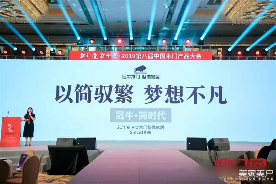 本屆大會上,冠牛木門“簡·時代”適此木門行業盛典之時發布,憑借其二十年專注木門及“簡·時代”優秀的設計理念,從近百家參選作品中脫穎而出,一舉奪魁2019中國木門+系統原創設計金星獎。冠牛新品“簡.時代”以南美實木尤加利+高級莫蘭迪色系,完美滿足要顏也要品,還要看匠心的中國新中產階級家庭高品質需求,奏響現場【最強音】。