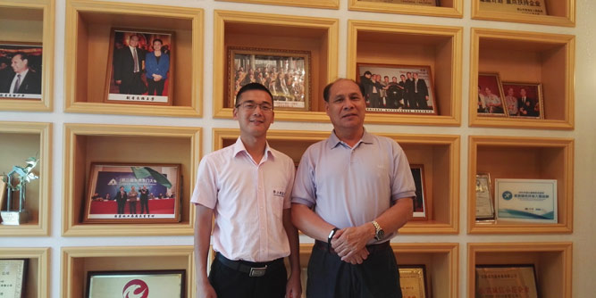右為潤成木業董事長光潤開,左為華工精益管理研究中心主任王曄