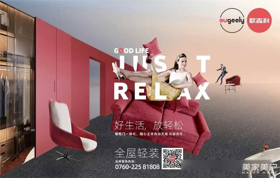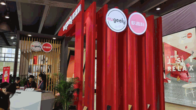 歐吉利詮釋 好生活,放輕松 的品牌內涵,全新產品線,全新LOGO,全新VI系統和形象,這次展位的總體設計根據歐吉利的品牌精神定位進行,艷麗活力的吉紅,配合高低有致的展位造形,昭示性特別強烈。