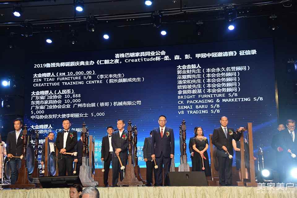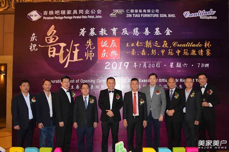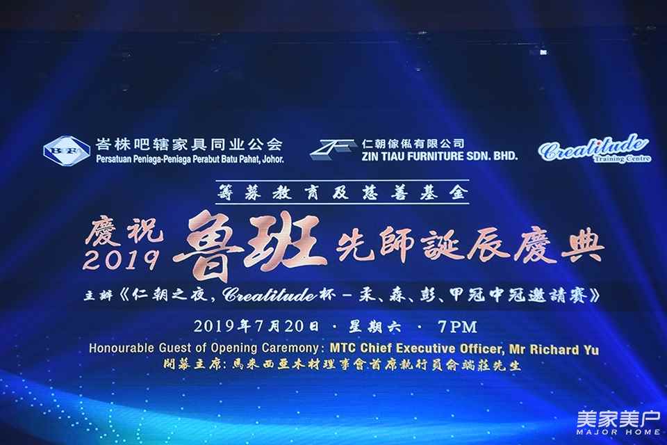 多年來,馬來西亞家具同業為了紀念土木工匠祖師爺魯班的豐功偉績,在其誕辰之日舉行隆重的慶典活動。7月 20 日,由馬來西亞峇株巴轄家具同業公會、魯班慶典籌委會主辦,東莞市荃荃商務咨詢有限公司協辦的“2019魯班先師誕辰慶典暨《仁朝之夜, Creatitude 杯-柔、森、彭、甲冠中冠邀請賽》、籌募教育及慈善基金”活動在馬來西亞峇株巴轄海景宴賓樓隆重舉行。當晚,1700多家居業同仁參加了此次盛典。