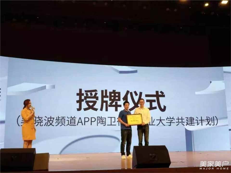 最后,吳曉波為佛山市城市合伙人、吳曉波頻道APP陶衛行業企業大學共建計劃成員——陶衛網董事總經理李聰頒牌。