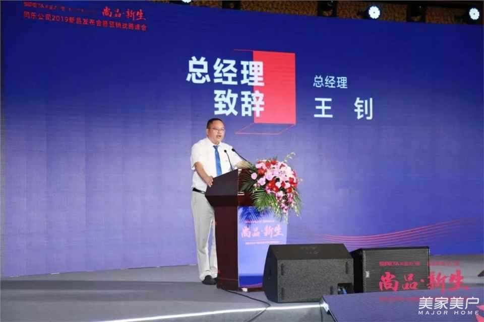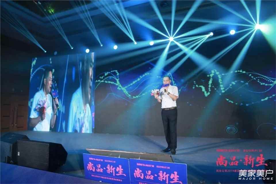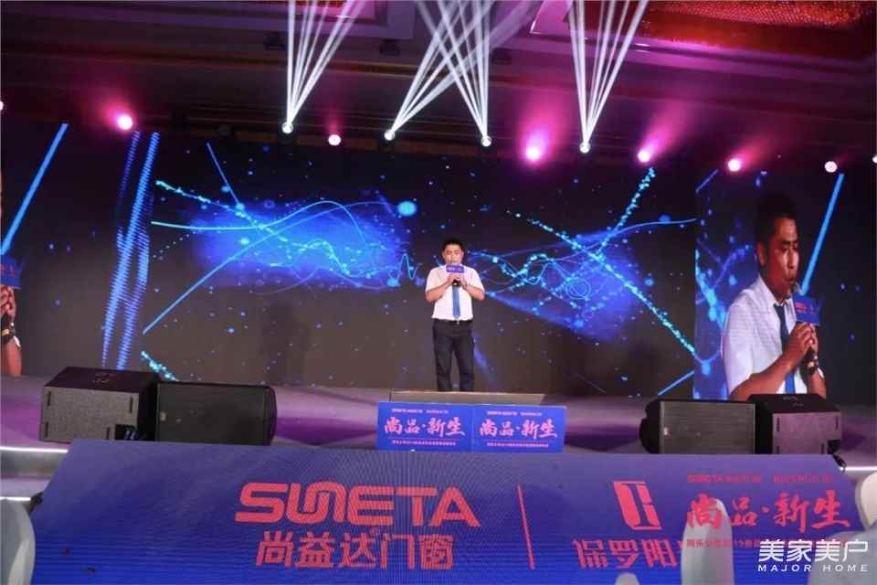 活動開始,尚益達門窗董事長陳方河先生致開幕辭,回顧了尚益達在2019年所取得成就以及建樹。陳董提到:“隨著市場品牌化的不斷加深,國家節能環保等可持續發展理念的不斷普及、8090后對于居家生活的藝術追求等,不斷砥礪公司前行,為了實現公司為員工創造福利,為客戶創造價值,為用戶定制完美,為社會承擔責任的企業使命,公司于年初投入大量資金,研制并推出了時尚系列推拉門,金樽雨盾,金樽磐石系列平開窗,并在此召開以‘尚品·新生’為主題的新品發布會。‘尚品·新生’預示著尚益達走上了全新的發展軌道,昭示著公司產品工藝體系日趨成熟,自主研發,自主生產,在市場產品日趨同質化的今天,我們為同樂公司的產品差異化找到了堅定的基石,并將在新品研發的道路上一騎絕塵。百舸爭流,奮楫者先,千帆競發,勇進者勝。”