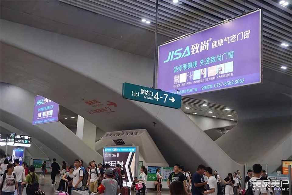 致尚門窗聯(lián)排吊旗廣告長年霸屏廣州南站