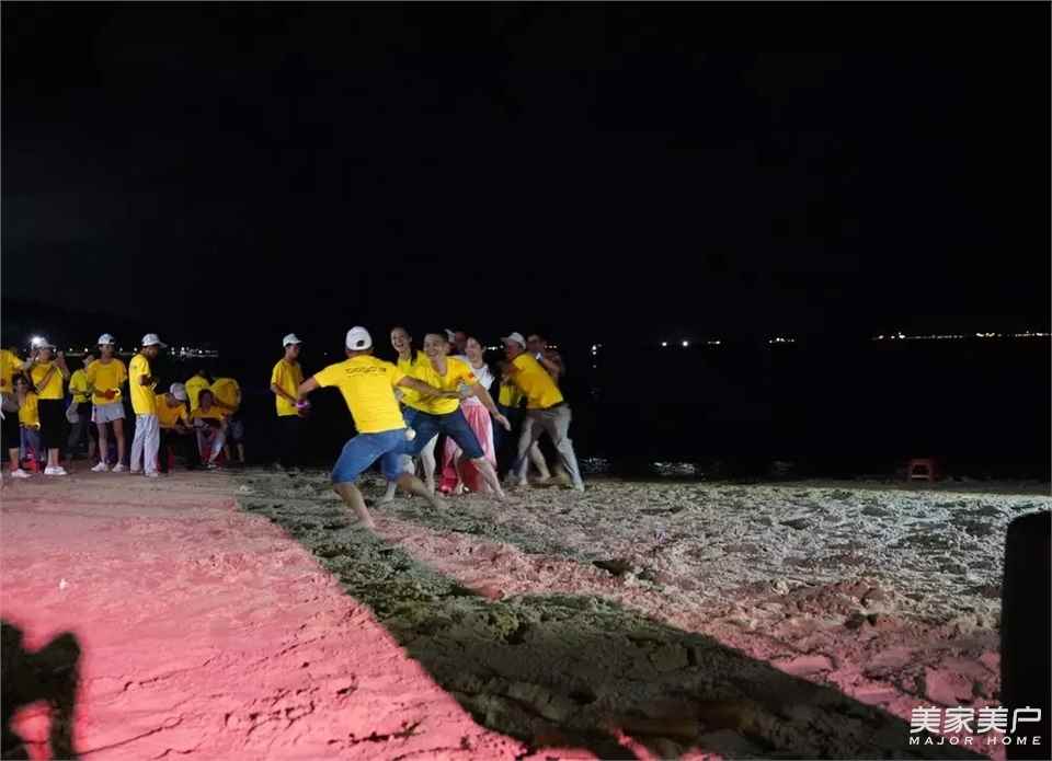 精彩一環接一環在大合照過后,全體人員來到海灘旁開展團建活動,整齊劃一的列隊出現在海岸上又是一道靚麗的風景線也獲得海岸上不少游客的駐足、觀望。