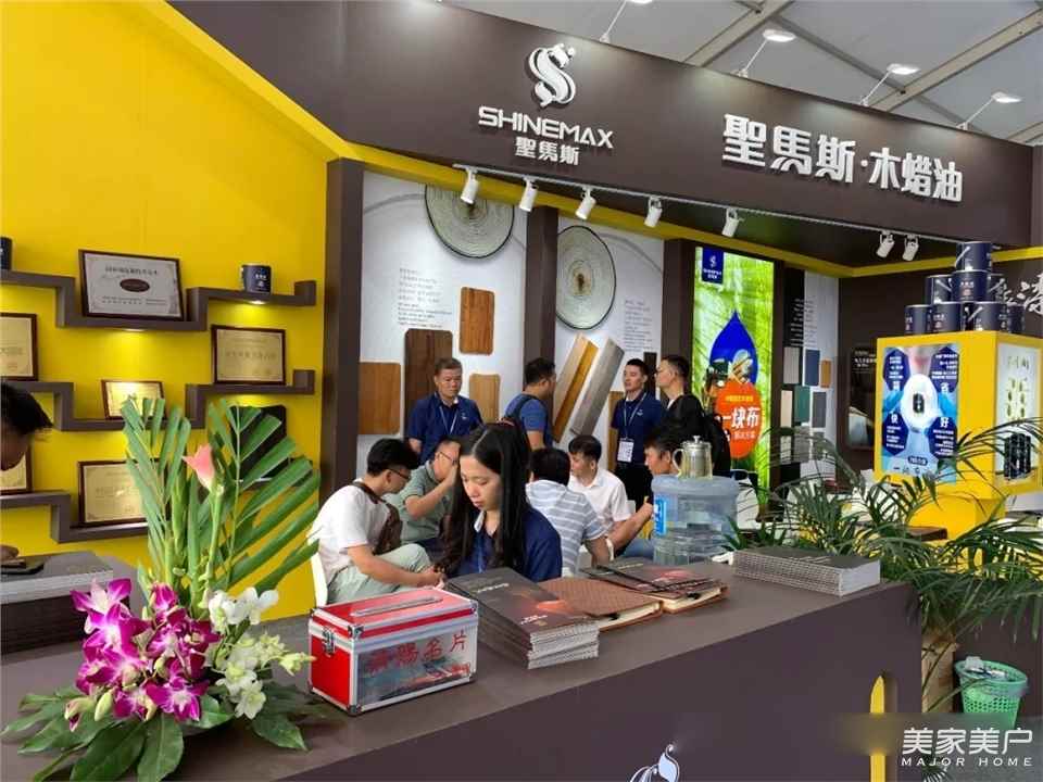 開展第一天首秀,圣馬斯木蠟油盡顯不凡風(fēng)范。工業(yè)風(fēng)展位簡(jiǎn)約大氣,實(shí)木涂裝樣板盡顯極簡(jiǎn)主義風(fēng)潮,現(xiàn)場(chǎng)熱鬧非凡。