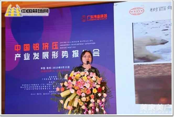 廣東偉業集團董事總經理 李偉萍女士分享“鋁擠壓企業‘1+N’綠色鋁材應用發展模式“主題報告: