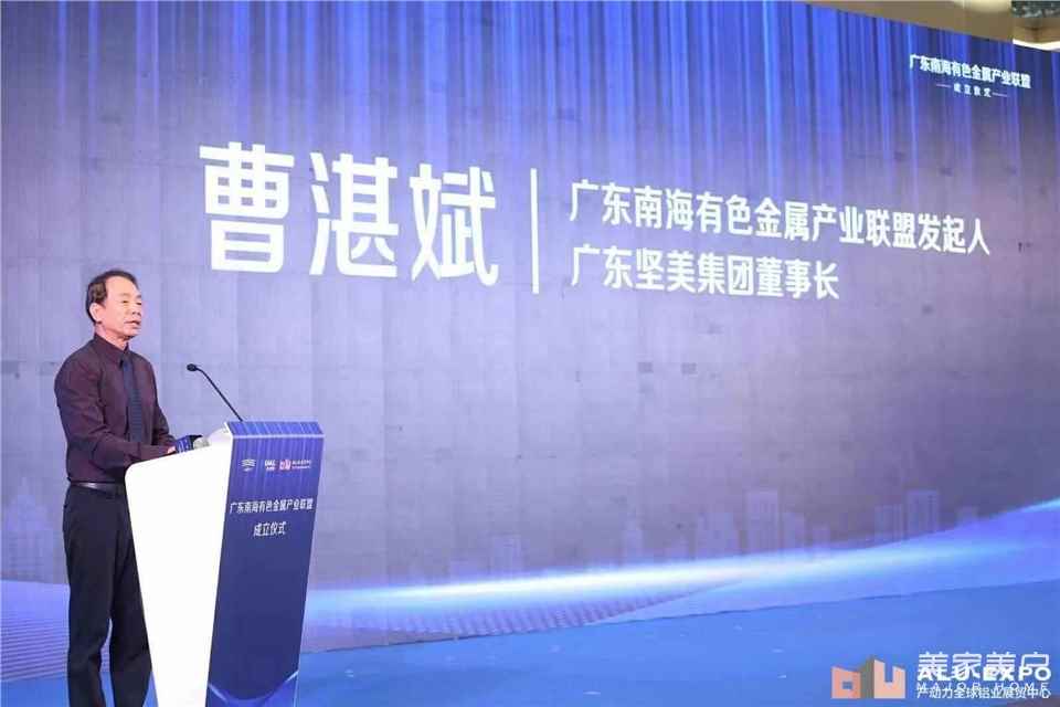 南海有色金屬產業聯盟發起人、廣東堅美集團董事長曹湛斌首先發表致辭。曹湛斌表示,自古商貿繁盛的南海是有色金屬產業聚集地,每年有色金屬產值約占全國的百分之30%。為此,鋁材龍頭企業堅美、偉業、華昌、新合、廣源等25家單位共同發起成立了眾鋁聯網絡科技有限公司,聯合眾多產業資源,為南海乃至中國的有色金屬進一步的發展做足充分的準備。