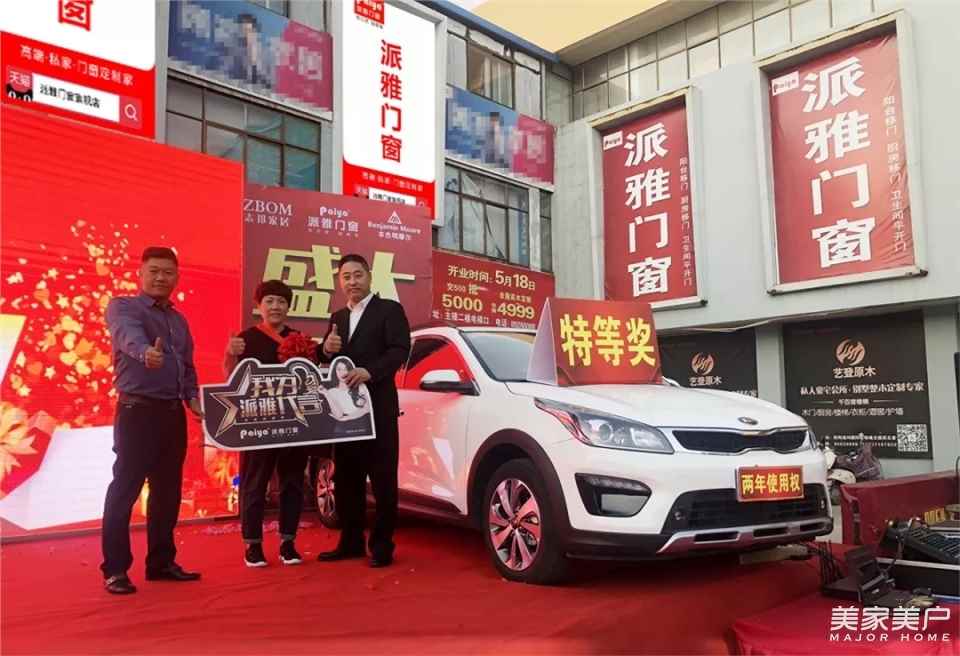 同時來自全國各地派雅家人:上海派雅梁總、南京派雅潘總、蘇州派雅周總、鹽城派雅許總、海門派雅將總、如皋派雅易總、建湖派雅仇總、響水派雅趙總、連云港派雅胡總、碭山派雅李總等派雅經銷商家人也前來祝賀、協助盛大開業。派雅董事長李鈞洪先生親臨“董事長簽售·萬金換良言”,業主享聯盟汽車大獎!總部多名區域經理全力協助,現場簽單不斷、大單多多,活動二十天累計訂金已超過160萬,合同額突破400萬,還有數幾十名業主正在洽談下定,青睞于派雅門窗的魅力。