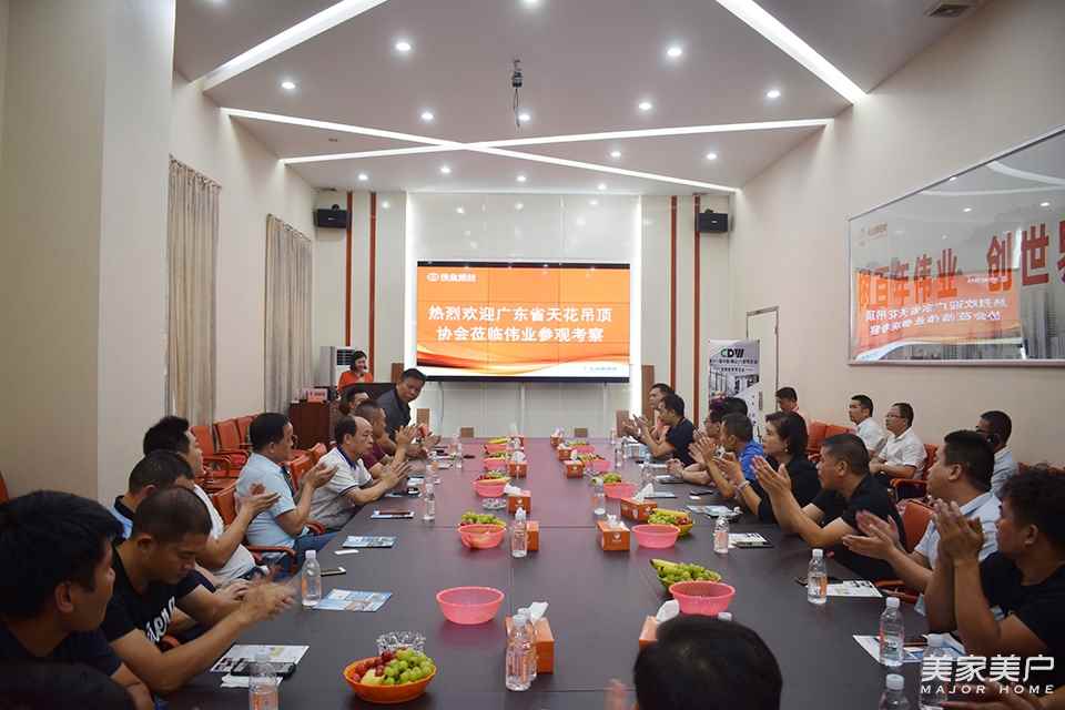 偉業(yè)集團(tuán)廣東銷售總經(jīng)理麥宗煒對廣東省天花吊頂協(xié)會(huì)各成員的到來給予了熱烈的歡迎,在短暫的交流后,偉業(yè)集團(tuán)廣東銷售總經(jīng)理麥宗煒帶領(lǐng)參加本次活動(dòng)的協(xié)會(huì)成員參觀了偉業(yè)的工廠以及產(chǎn)品展示廳,讓各企業(yè)代表近距離的接觸和走進(jìn)偉業(yè)。