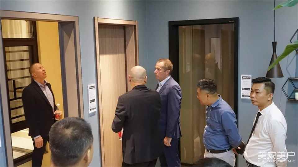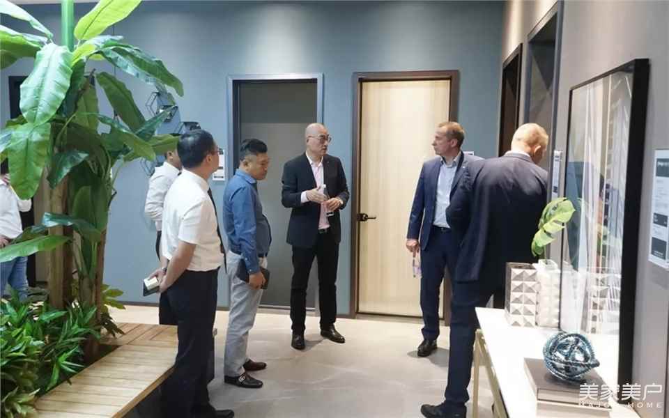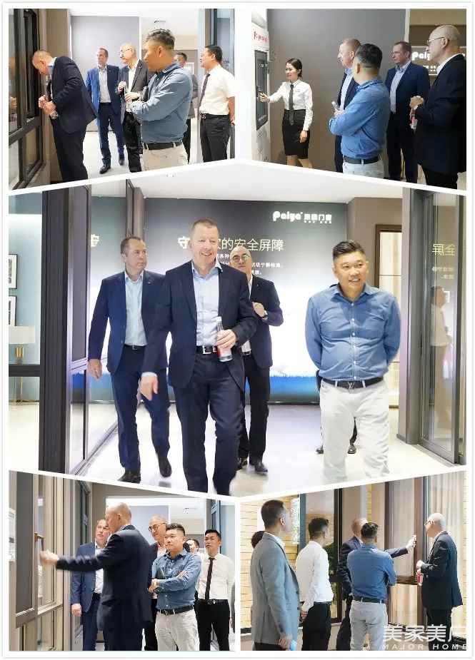 派雅門窗李董、易總與陳總陪同德國絲吉利婭集團總裁、亞太銷售總監及中國區總經理考察派雅300000㎡的現代化生產基地及全新一代4.0展廳,在參觀派雅全新一代4.0展廳時,絲吉利婭集團領導為如此高端、新穎、時尚的展廳效果而震撼,面對琳瑯滿目的產品,不時地駐足詢問、傾聽、觀摩,對派雅鋁門窗、生態門等產品的創新研發給予了高度的評價及贊美。