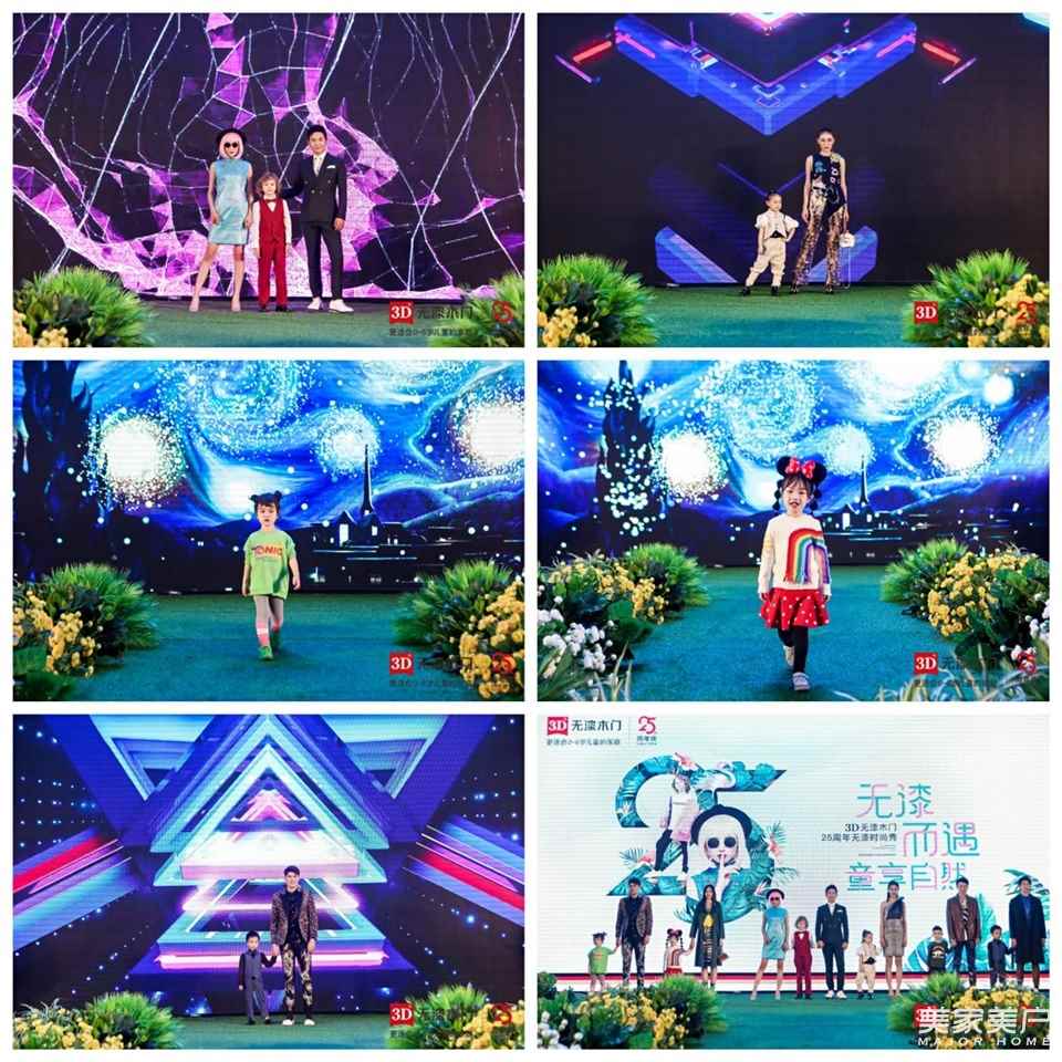 各方嘉賓的致辭,拉開了無漆時尚大秀的序幕,裝修污染影響著家里每一個人的健康,特別是對0~6歲這群免疫力低下的孩子影響最大。為此,3D無漆木門25周年無漆時尚秀聚焦兒童成長,從備孕到懷孕再到有了孩子,由一群活潑可愛的小朋友攜手迷人俊俏的男女模特,演繹著不同時期的家庭、不同年齡段孩子對健康的共同訴求。3D無漆木門,沒有油漆就是沒有油漆,更適合0~6歲兒童的家庭。